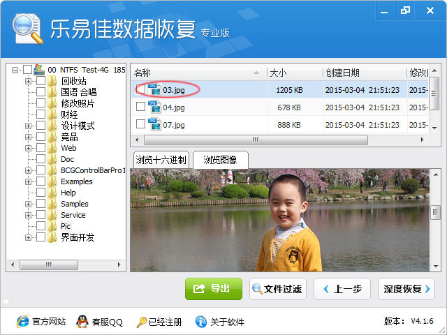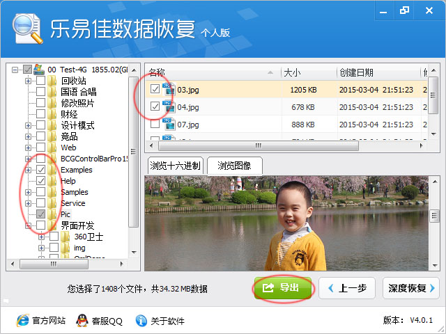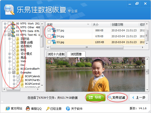 6、如果找到您要恢复的文件,可以在树形控件和列表控件里勾选您需要恢复的文件和目录。然后点击“导出”目录,导出数据。