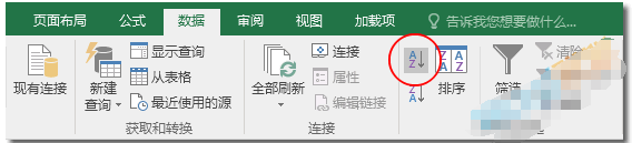 步骤二、点击【数据】选项卡,在【排序和筛选】中点击【升序】按钮。
