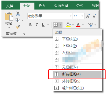 步骤一、选中所有的数据,进入【开始】-【字体】-【边框】-【所有框线】。给数据加上边框线。