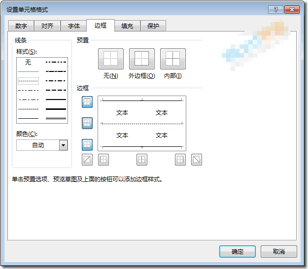 步骤三、选中后,【右键】-【设置单元格格式】,在弹出的设置单元格格式窗口中,点击进入【边框】选项,将表格内外竖线取消掉,将表格中间的横线用虚线代替,点击确定后就大功告成了!