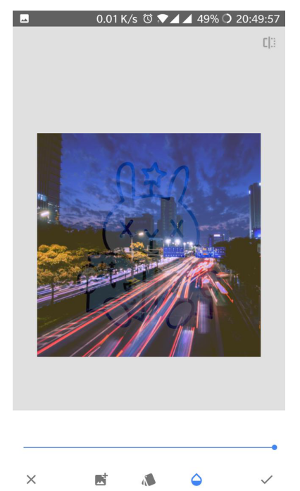 经过上一步,已把两张照片合在一同了,但只看到了一个人,另一个人被远景图给“遮挡”住了,这就需求运用snapseed的蒙版功用,用蒙版把前景图中的人物独自擦出来。