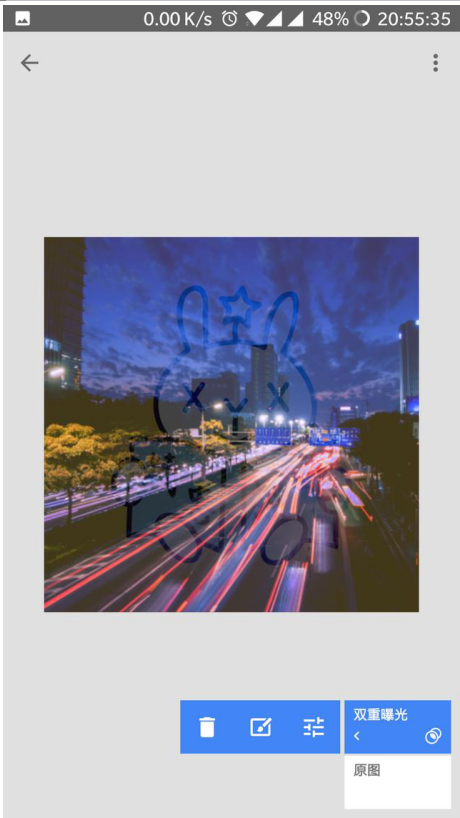 前期软件运用snapseed便可,在snapseed中先翻开一张照片作为前景图,以后找到【两重暴光】形式,参与别的一张照片,把两张照片分解在一同。