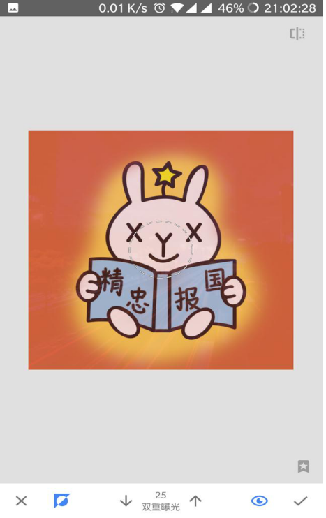 2、点击【两重暴光】下向左的小箭头,再点击最中间的按钮,便可进入蒙版操纵界面。