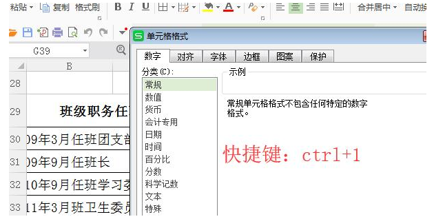 快速打开设置单元格格式