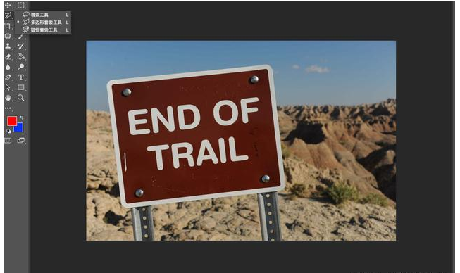 套索工具适用于轮廓分明明显的线性形状抠图,以多边形套索为例。首先在左边工具栏找到多边形套索工具。