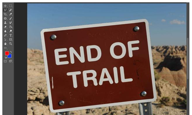 点击图片背景,即可发现大部分背景已经被魔棒一键选中,点击【Delete】键即可抠去背景图。