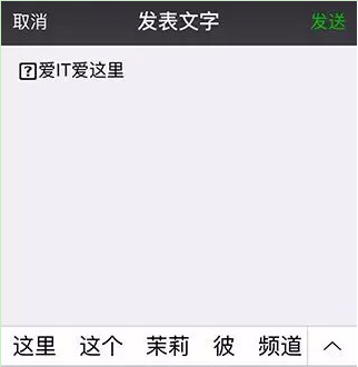 2、然后按住相机按钮进入发消息界面,将刚才复制的内容粘贴到输入框,这时你会发现粘贴的文字最前面有一个方框套问号的特殊字符,事实上正是这个字符实现了让字体大小不一的功能。