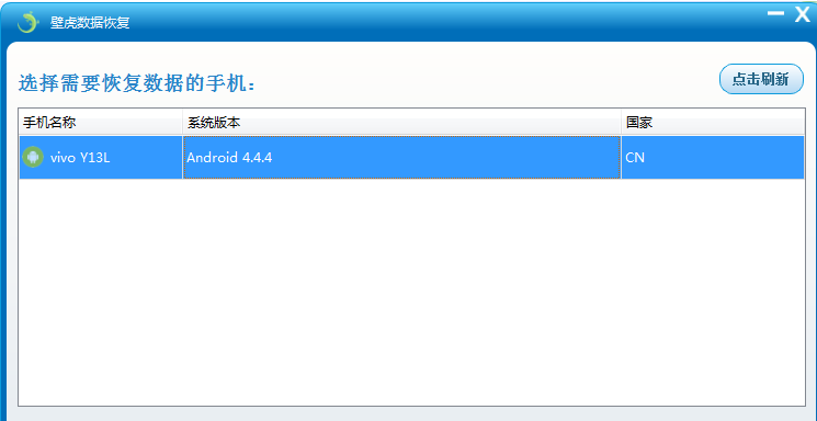 然后在Windows版壁虎数据恢复点击“手机数据恢复”,它会自动识别手机,选中后点击下一步,如下图: