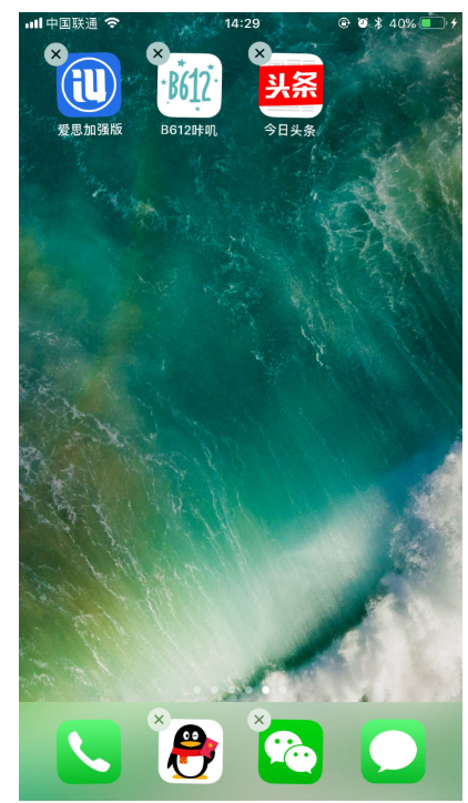 1、需要大家用一只手长按图标,进入【 抖动模式 】同时另一只手指长按home键召唤出Siri。(使用iPhoneX的小伙伴们长按电源键唤出Siri)记住,两只手指都不能松开!