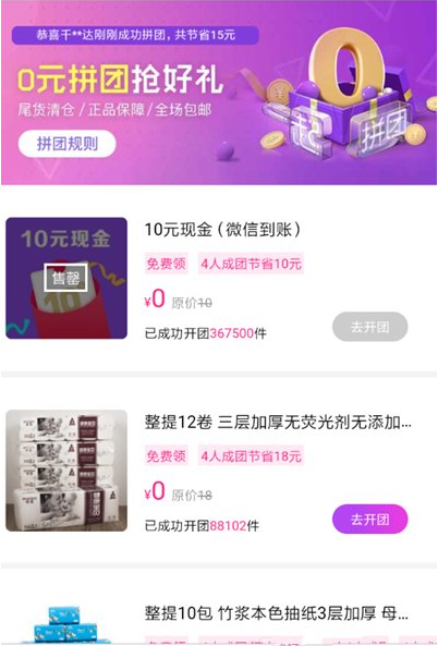 3、而根据规则限定,用户每天最多开5个0元拼购团,而且只有新注册或者没有支付过的用户才能参团一次,大家赶快去拉人参团吧。