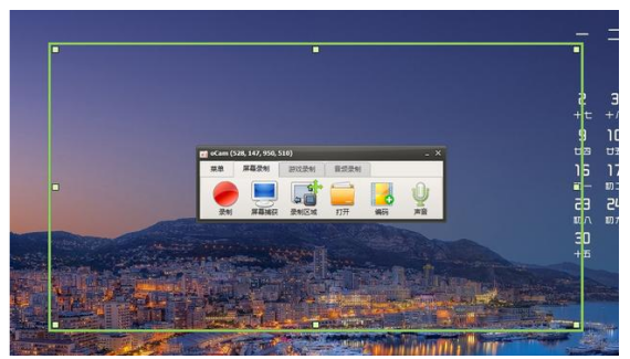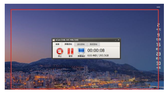 打开oCam之后,电脑屏幕会出现一个虚线框和一个录屏选项面板。虚线框就是你要录屏的区域,可以自由调节,十分方便!
