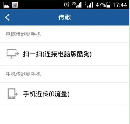 出现了传歌的界面,两种形式让你选择,选择下面的“手机传歌到手机”,点击进入。
