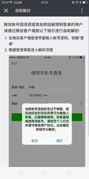 微信账号被封是有原因的,比如说同一台手机上注册多个微信账号,新注册的账号有很多人添加,如果说你的好友到5000,那么恭喜你,你的账号就成为重点监测对象了,账号被封,朋友圈自然也看不到了,如何让微信恢复正常呢?
