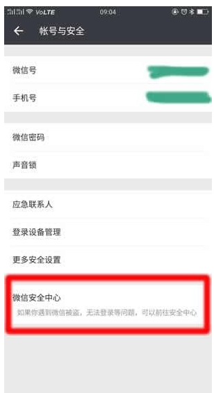 点击后进入【账号与安全】界面,再点击最下方的【微信安全中心】;