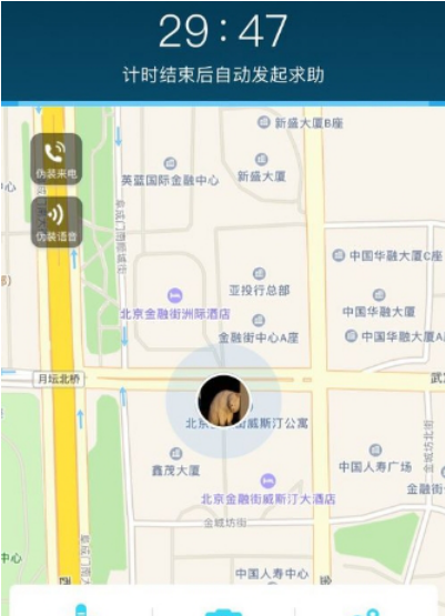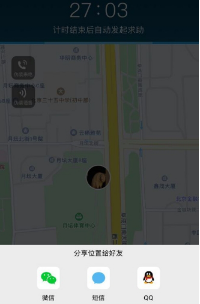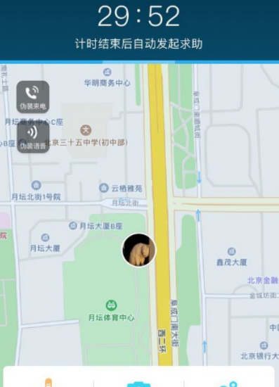 预估好时间,点击开始防护,就进入倒计时,并提示你:计时结束自动发起求助。此时页面会显示你的实时位置,并有五大功能加强对你的保护,满足你在不同情境下的需求。