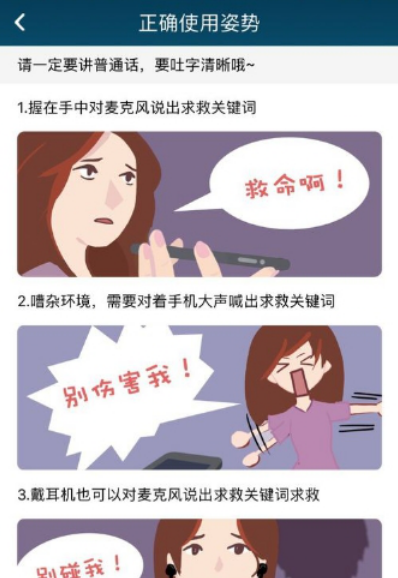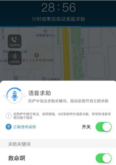 1.语音求助:点击语音求助开启语音求助功能,遇到突发问题来不及进行任何操作时,就要立马喊出求救关键词,怕怕会自动识别并为你发起求助。