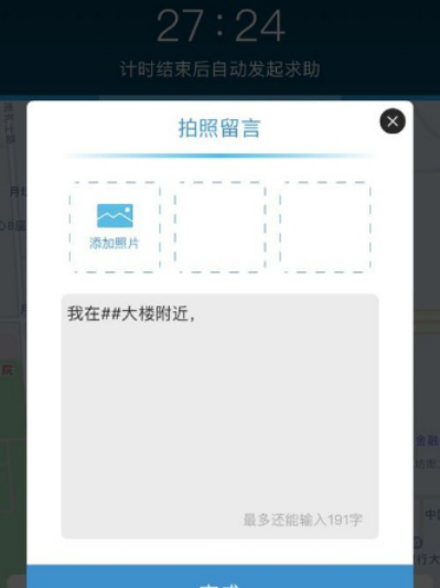2.拍照留言:拍下周围的街景或是身边可以人的样貌或是用文字描述出,不论照片还是文字都会在你遇到紧急危险时上传至怕怕预警平台,并发送给你的紧急联系人,以便更快更准确地实施救援。
