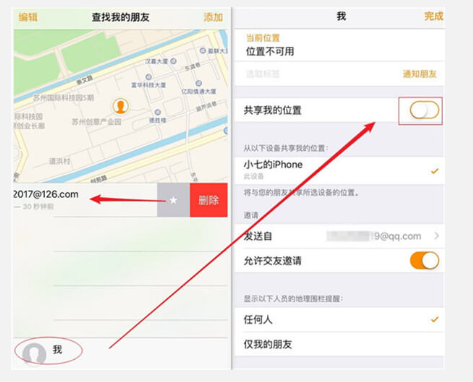 我们打开【查找朋友】App,如果在列目标中看到第三方iCloud账号,就说明我们已经被其定位了。