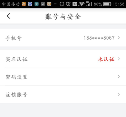 3、打开“账号与安全”,里面有显示的手机号、实名认证、密码设置以及注销账号选项。