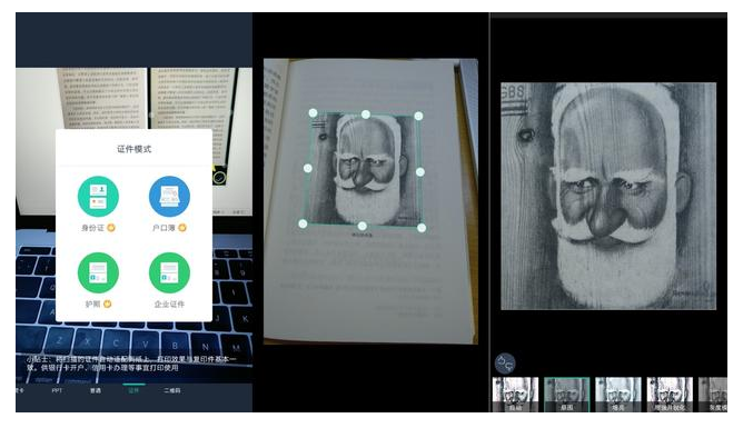 打开Office Lens,将镜头对准需要扫描的文件,在软件提供的四种扫描方式(即名片、照片、文件、白板)中选择相对应的扫描方式,随后无需任何手动操作,Office Lens就会利用计算机视觉自动框选文件有效范围,自动雾化无用的背景进行内容截取。照片拍摄完毕之后,还可手动进行修正和转存为Word文档,整个过程十分便捷。