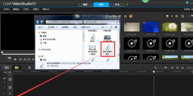 2、打开文件夹,将其中准备调制的音频文件拖到声音轨道上。还可以右击声音轨道,直接插入准备调制的音频文件。