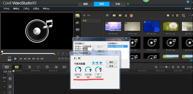 3、接着右击音频文件,选择音频滤镜。添加干扰去除器,点击选项,参数如图。