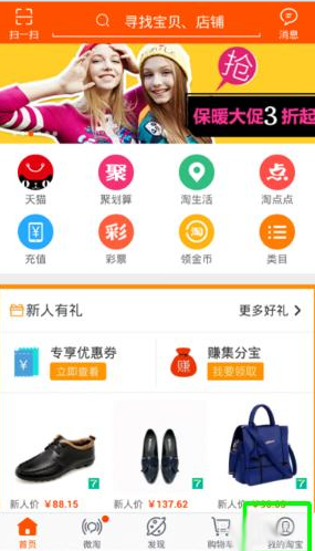 1、打开淘宝客户端,进入个人首页,点击页面右下方的我的淘宝