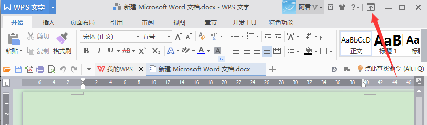 第五步,如果想要显示菜单栏,可以点击之前的红色按钮,它的意思现在是显示功能区。如下图所示