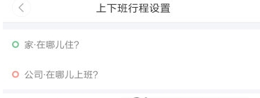 2、然后点击【上下班行程设置】,进入后在家到公司的地址上点击即可进入定位地址;