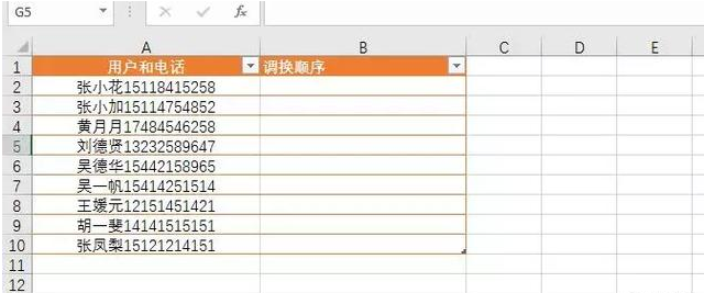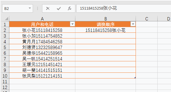 我们先写好第一行,让Excel能够识别拆分的样式:15118415258张小花