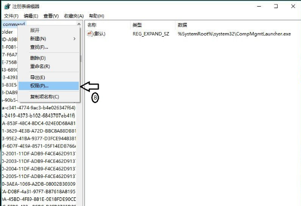 7、选择”command“选项右键单击”权限“;