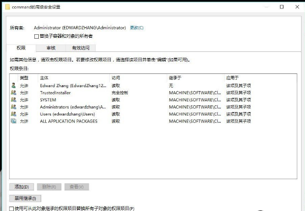 12、回到”command的高级安全设置“对话框单击”确定“;