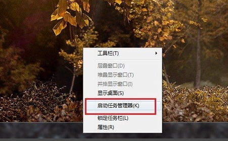 右键桌面下的任务栏,点击“启动任务管理器”,如下图所示:
