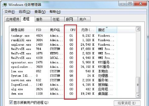 方法一、通过结束进程降低CPU使用率