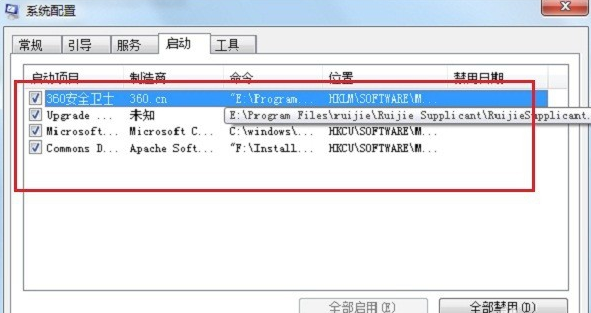 2、点击“启动”,关闭一些不需要的开机启动项,如下图所示: