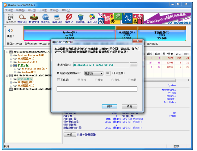 点击“清除”按钮,软件开始清理。在开始之前,用户可以选择用于填充空闲空间的字符,也可以自己指定十六进制字符。