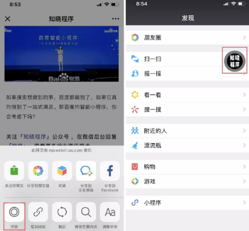 当用户点击文章右上方的「…」栏时,会新出现浮窗按钮,点击之后,该文章会被缩小为一个圆形图标,此后,无论用户处于微信的那个页面,都可以直接通过浮窗打开这篇文章。