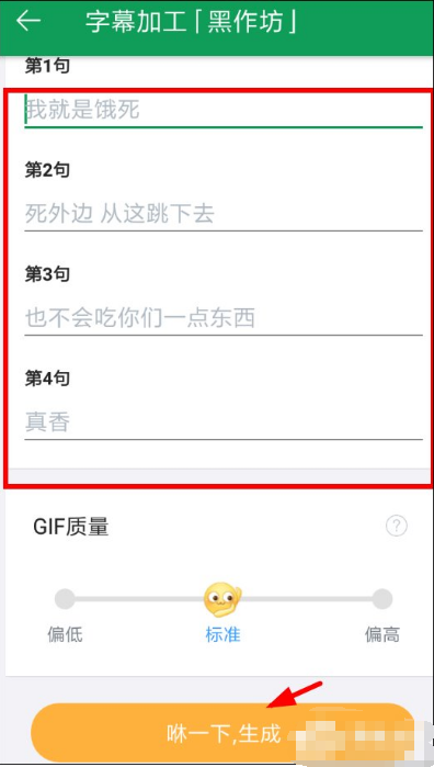 3、然后从中输入字幕,选择底部的生成按钮,就可以成功的制作生成GIF图片了。