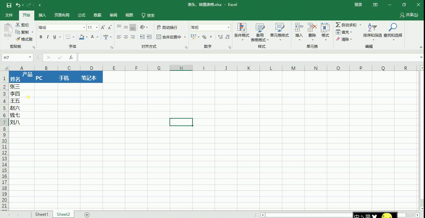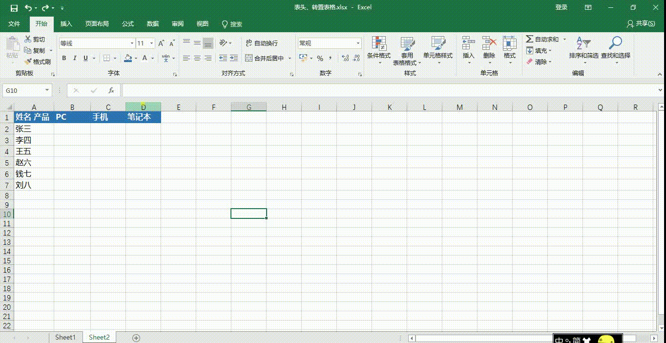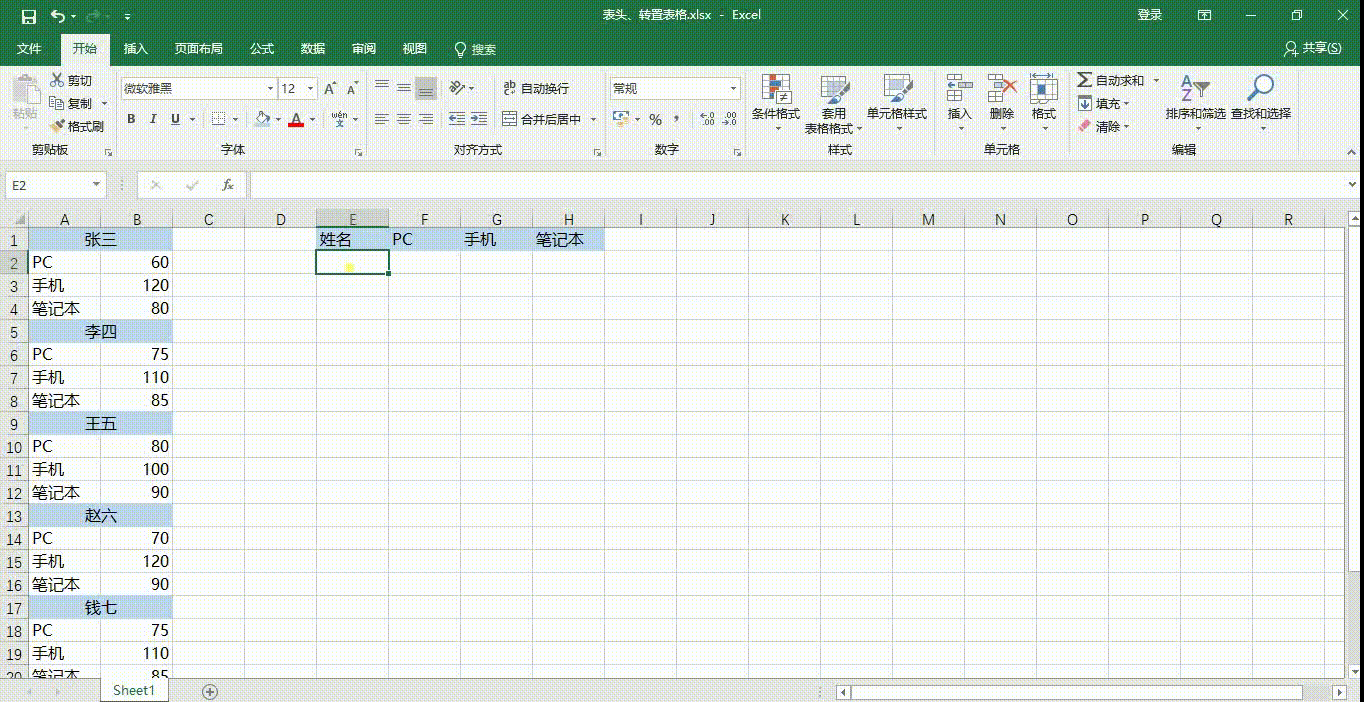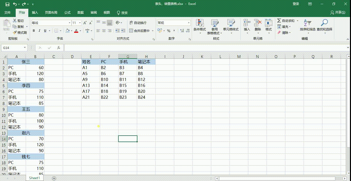 转置表格