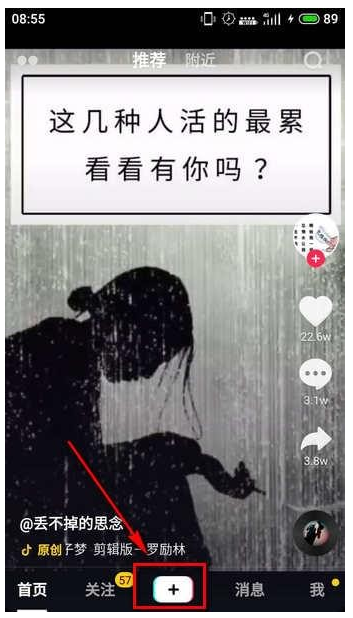1、打开抖音短视频,点击中间加号+,