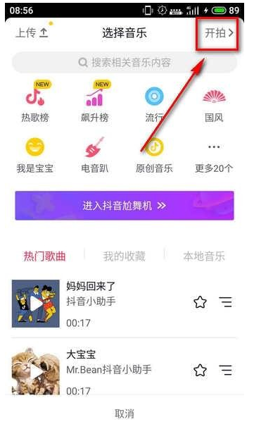 2、点击右上角开拍,