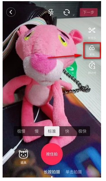 3、进入拍摄页面后选择右边功能栏的美化,