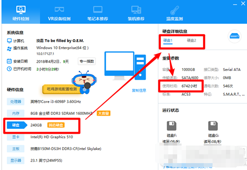 接下来点击【硬盘】——硬盘1或者硬盘2——查看使用时间。