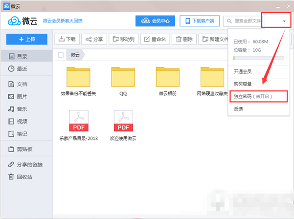 腾讯微云独立密码设置