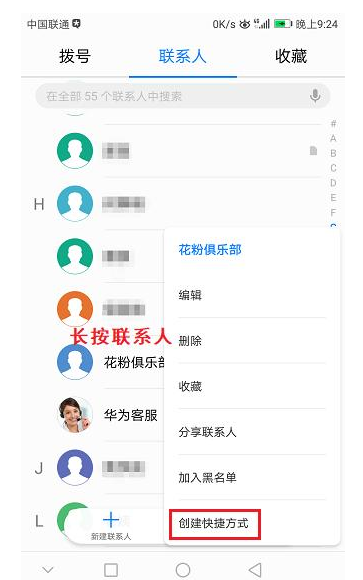 打开手机通讯录,定位到你的那个Ta,长按联系人,在弹出的菜单中选择【创建快捷方式】: