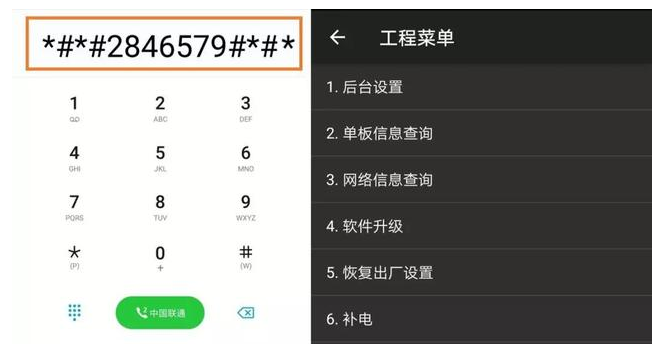 进入方法:打开拨号界面输入【*#*#2846579#*#*】