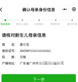 (选择单亲家庭的用户无此步骤)与“新生儿母亲身份认证”流程相同