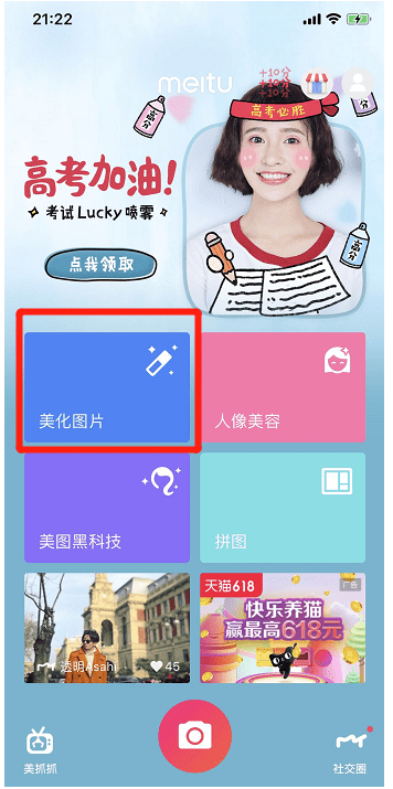 打开美图秀秀APP,点击【美化图片】;
