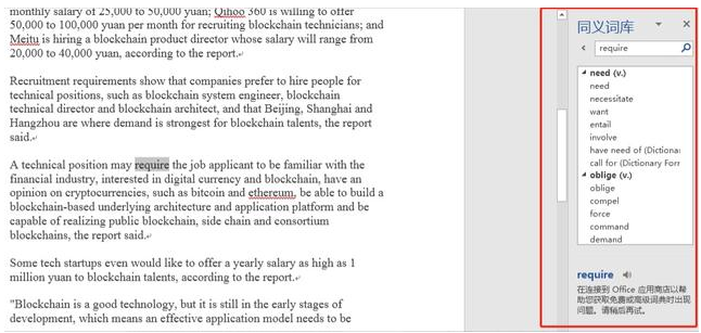 有时候需要用到一些高级同义词,想不到的话可使用这个功能,选择一个单词,然后按组合快捷键:Shift+F7就可以了;