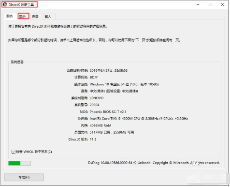 2、接下来点击【确定】按钮,即可打开DirectX诊断工具;